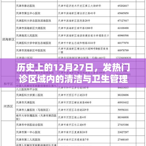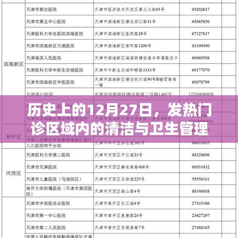 每年的12月27日,对于全球各地的医疗机构来说,都是一个值得纪念的日子,这一天,不仅见证了无数医疗工作者的辛勤付出,也见证了医疗设施在应对突发公共卫生事件中的不断进步,特别是在发热门诊这一关键区域内,清洁与卫生管理显得尤为重要,本文将探讨历史上的12月27日发热门诊区域内的清洁工作及其重要性。