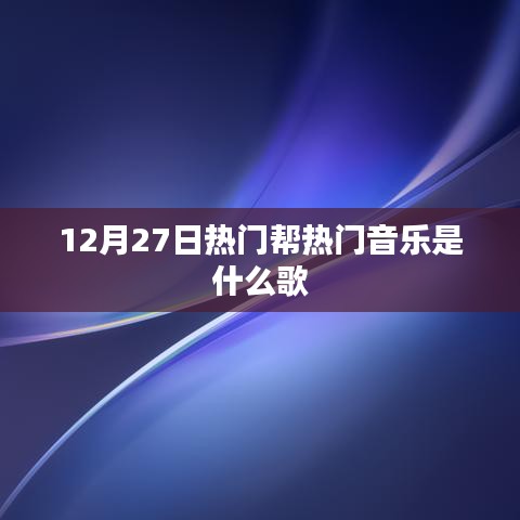 音乐平台的推广也是决定歌曲走红的重要因素之一,各大音乐平台通过推荐、榜单等方式将热门歌曲推向大众视野,在12月27日这一天,一些被音乐平台力推的歌曲如《XXXX》、《XXXX》等,凭借其出色的音乐质量和广泛的推广,成为了热门之选。