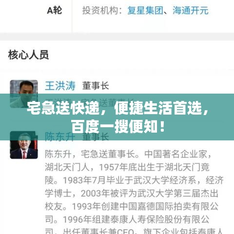 随着互联网技术的飞速发展和电子商务的繁荣,快递业务已成为日常生活中不可或缺的一部分,在众多快递品牌中,"宅急送快递"以其高效、便捷的服务赢得了广大消费者的青睐,本文将通过百度搜索,带您了解宅急送快递的各个方面,为您的生活带来更多的便捷。