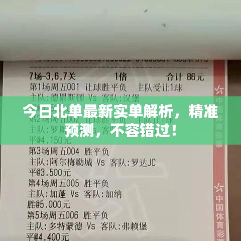随着体育产业的蓬勃发展,足球赛事日益受到关注,北单作为中国大陆足球彩票的一种,吸引了众多球迷和彩民的关注,本文将围绕“今日北单最新实单”这一主题,为大家带来最新的北单赛事解析。