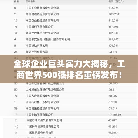 随着全球经济一体化的深入发展,各大企业的竞争也日益激烈,每年的工商世界500强排名,无疑是全球企业界最为关注的一大盛事,这一排名集中展示了全球领先企业的实力与风采,反映出全球经济的最新趋势,本文将深入探讨工商世界500强排名的背后意义,揭示全球企业巨头的实力格局。